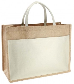 Bolso Ecológico grande de Yute natural con amplio bolsillo delantero de Canvas 100% Algodón natural de 250 g/m2. Cuenta con 2 asas de algodón natural relleno de 40cm. c/u aprox.