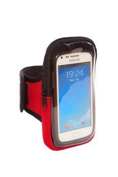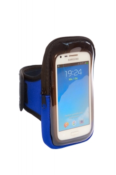 42,5 x 16,1 cm. Neoprene. Brazalete para celulares, malla ajustable con cierre de velcro Posee una ventana transparente de PVC con cierre.