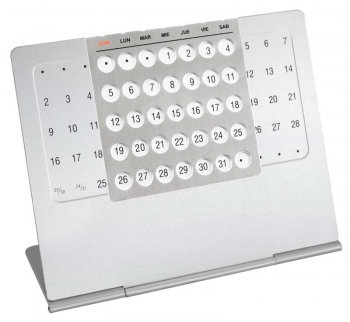 Calendario Eterno Metálico de escritorio, para todos los dÃas, meses y años. Con ventana semanal móvil en español. Presentación en cajita plateada de regalo.