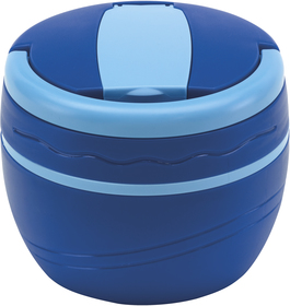 Ø 13 x 12 cm. Plástico. Lonchera con un contenedor separable apto para usar en microondas con dos espacios. La tapa es a rosca, tiene asa y un compartimento con cuchara/ tenedor. Mantiene la comida caliente/frÃa durante un máximo de 4 horas. Capacidad máxima aproximada de 450 ml.