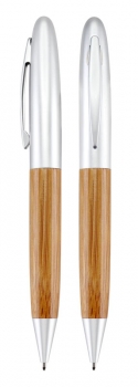 Deluxe BolÃgrafo Ejecutivo de Madera de Bamboo con cuerpo superior y clip metálicos satinados, tinta azul.