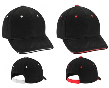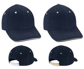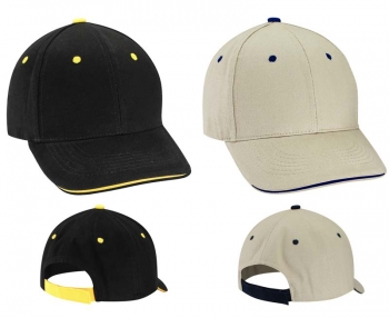 Jockey Denim 6 paneles, 100% Algodón peinado, con visera "sandwich" y detalles bicolores, cierre posterior velcro. Talla única adulto