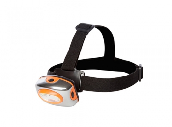 5,8 x 4,4 x 3,9 cm. Plástico. Con banda elástica para la cabeza en color negro. Utiliza 3 baterÃas AAA (no incluÃdas).