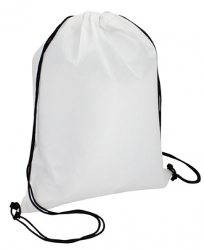 Mochila simple de 210D/PU poliéster, con tiras de cordón negro. El color blanco es ideal para imprimir en sublimación. Tamaño: 34 x 44 cm. (01)