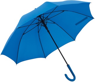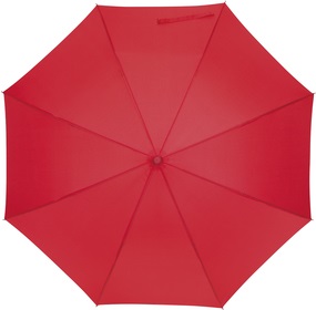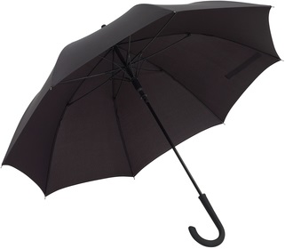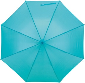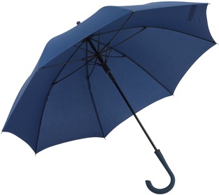 Ø103 cm. Aprox. Bastón metálico, varillas en fibra de vidrio, puntas metálicas y mango curvo de plástico. Tiene un mecanismo de apertura de botón. El revestimiento es especial para la lluvia, con cinta con cierre de velcro.