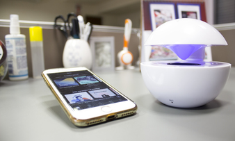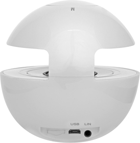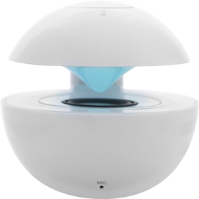 Ø 11,5 x 13 cm. Plástico. Parlante bluetooth. Botón de encendido y apagado. Cuenta con una luz en el centro del parlante que va cambiando de color. Botón de volumen, play o pausa y modo. Alcance 10 metros.