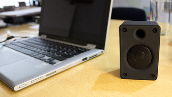 9 x 6 x 4,6 cm. Plástico. Parlante Bluetooth. En la parte interna engomado. Se puede conectar por bluetooth y cable mini USB. Alcance 10 metros.