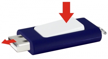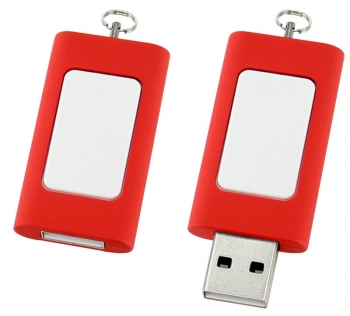 USB Pen Drive modelo \"Interruptor\" de 4GB. Incluye mini-anillo metálico para llavero. Presentación en cajita plateada de regalo.