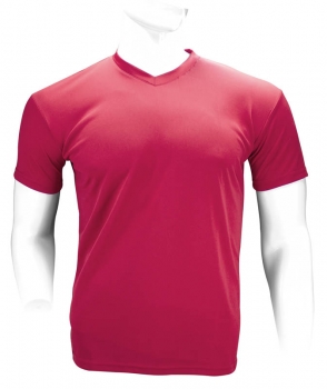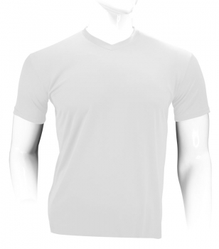 Polera 100% POLIÉSTER de 150gr/m2, para HOMBRE. Cuello en "V", manga corta. Presentación individual en bolsa de polipropileno transparente.