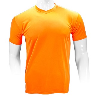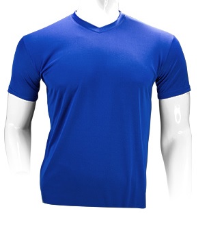 Polera 100% POLIÉSTER de 150gr/m2, para HOMBRE. Cuello en "V", manga corta. Presentación individual en bolsa de polipropileno transparente.