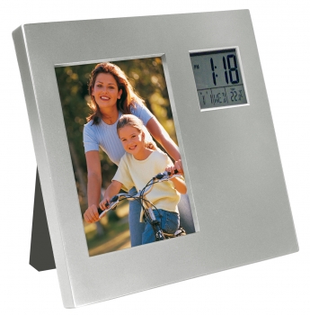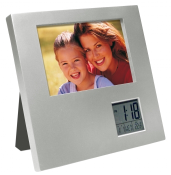Porta-Retrato de Escritorio para foto de 13 x 9 cm con Estación Meteorológica Digital, incluye Reloj-Alarma-Calendario-Termómetro. Posición Horizontal o Vertical. 01