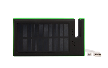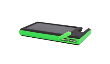 14 x 7 x 2 cm. Plástico. Capacidad 6000 Mah. Cargador móvil para smartphone, iphones, ipads, GPS y camaras. Recargable por cable USB o panel solar. Con protección de silicona en los laterales. Soporte para teléfono y linterna que se enciende con doble click en el boton power. Incluye cable micro USB . Función de protección contra la sobrerecarga/descarga extrema. . Incluye manual de instrucción.