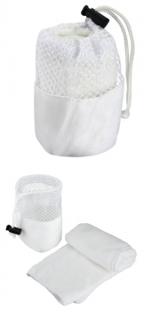 Toalla Facial de Microfibra. Presentación dentro de bolsito de poliéster con malla. Fácil de transportar y liviana, ideal para hacer deportes y para el Gimnasio. Toalla 33 x 30 cm aprox / Bolsito Ø 7 X 11 cm aprox.