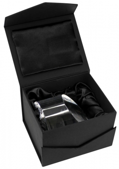 Trofeo de Cristal modelo \"Cylinder\" con forma de cilindro truncado. Presentación en caja de cartón forrado negro.