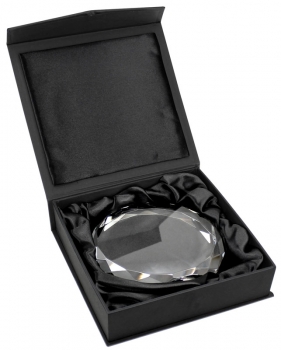 Trofeo de Cristal modelo \"Diamond\". Presentación en caja de cartón forrado negro.