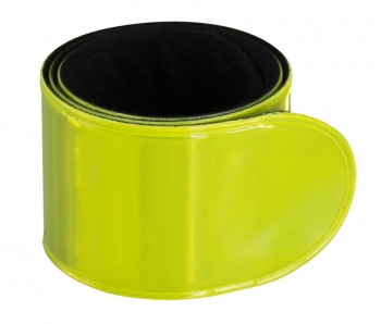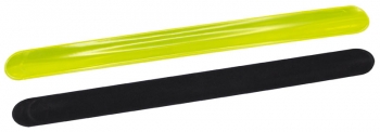 Banda Reflectante Retráctil, para uso nocturno. Reverso negro aterciopelado. Ideal para usar en muñeca, brazo y tobillo. Presentación en bolsita transparente de polipropileno con orificio para ganchera.