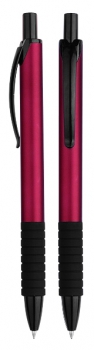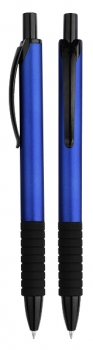 BolÃgrafo \"Vulcano\" con cuerpo de color metalizado opaco y terminales negros. Escritura azul.