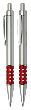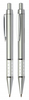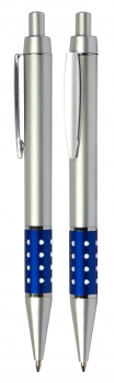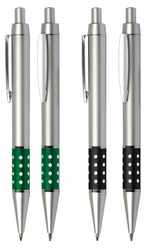 BolÃgrafo Plástico Metalizado modelo \"Alum\", con anillo metálico con orificios. Escritura azul.