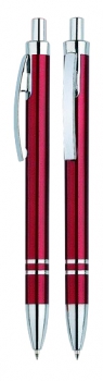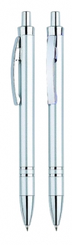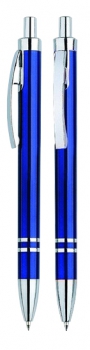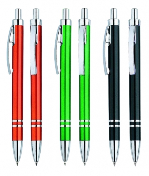 BolÃgrafo plástico \"Arco\" con cuerpo de color metalizado. Escritura azul.