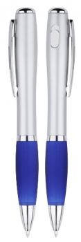 BolÃgrafo plástico con linterna LED. Escritura Azul.
