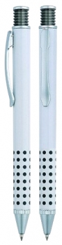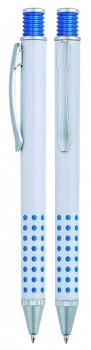 BolÃgrafo plástico blanco \"Dot\" con puntos de color. Escritura azul.