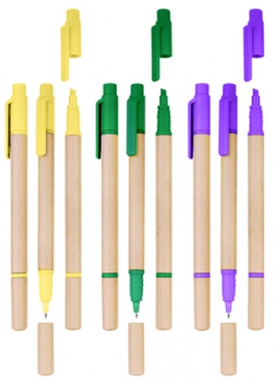 BolÃgrafo Ecológico de cartón reciclado con destacador de color. Escritura azul. (1)