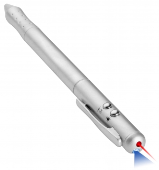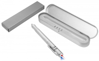 BolÃgrafo metálico multi-función 4 en 1. Incluye bolÃgrafo, linterna LED, puntero láser y puntero PDA (Palm). Presentación en estuche de aluminio. Escritura Azul. (1)