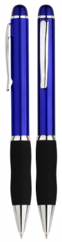 BolÃgrafo plástico \"Qasar\" con cuerpo de color metalizado. Escritura azul.