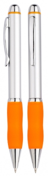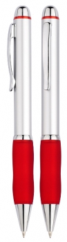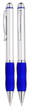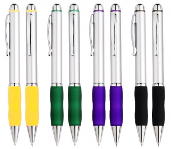 BolÃgrafo plástico metalizado \"Qasar\" con goma de color. Escritura azul.
