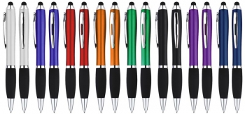 BolÃgrafo \"Wind Color Touch-Screen\" con goma posterior negra para pantalla táctil. Escritura azul.