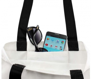 Bolso de Playa modelo \"Cancún\" de Poly-Cotton natural, composición 50% polyester / 50% algodón. Incluye bolsillo interior para guardar accesorios pequeños. Cuenta con 2 asas negras de 56cm. c/u aprox. (1)
