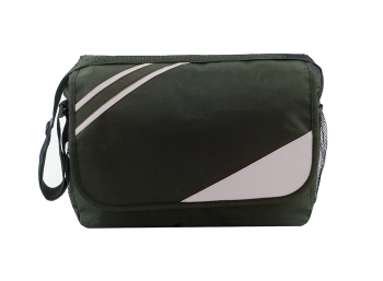 36 X 26 X 11 cm. Polyester 600D. Tapa con Velcro. Cierre. Bolsillo interno. 2 Bolsillos laterales en malla . Correa de nylon ajustable. (2)