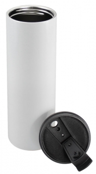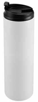 Botella Térmica Blanca de doble pared aislante, interior de acero inoxidable. Tapa rosca de plástico negro con dosificador. Cobertura exterior con polÃmero especial marca ORCA COATINGS(R) para una sublimación de primera calidad. Cada unidad se entrega dentro de su caja individual de cartón blanco. Capacidad: 550 cc. Tamaño: Ø 7.2 x 22.5 cm. (01)