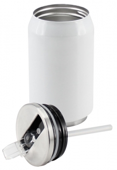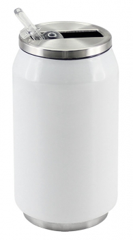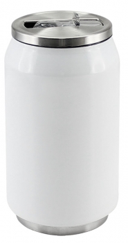 Botella Térmica Blanca de doble pared aislante modelo \"Can\", interior de acero inoxidable. Base y Tapa rosca metálica con dosificador. Cobertura exterior con polÃmero especial marca ORCA COATINGS(R) para una sublimación de primera calidad. Cada unidad se entrega dentro de su caja individual de cartón blanco. Capacidad: 280 cc. Tamaño: Ø 6.8 x 18 cm. (01)