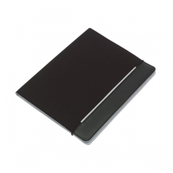 Medidas: 32 cm x 26 cm x 2 cm. Peso: 0,50 kg. Materiales: Microfibra / 600D Nylon. Incluye block de hojas A4. Con lazo para lápiz pasta, diversos compartimentos, con goma para el cierre. (2)