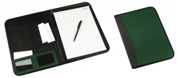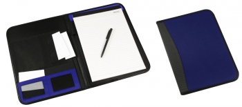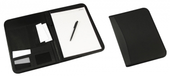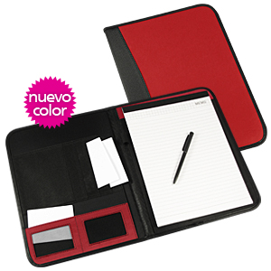 Carpeta de PU/PVC. En el interior incluye Block de 30 hojas lineadas tamaño A4, BolÃgrafo negro a pasta, Bolsillos para documentos tamaño A4, Bolsillos de tela TNT y Compartimentos para Tarjetas.(1)
