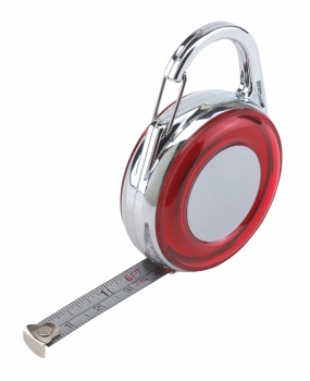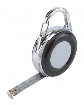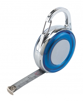6,6 x 4,7 x 1,8cm. Metal y plástico. Largo 2m. Robusta tapa de acero. Escala de medida en cm y pulgadas. Mosqueton para sujetar a la cintura.