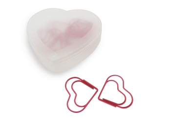 Plástico. Clips metálicos en forma de corazón. Caja plástica transparente en forma de corazón. Cierre con imán.(2)