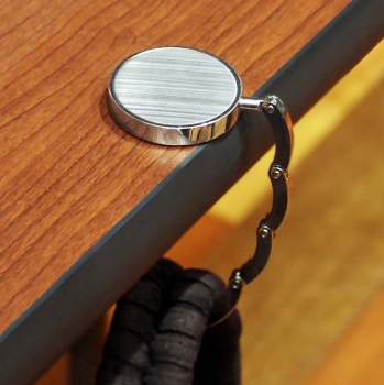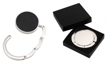 Colgador Metálico Grande de sobremesa para Bolsos y Carteras, modelo \"Spiral\". Presentación en estuche laminado negro con cuna aterciopelada.