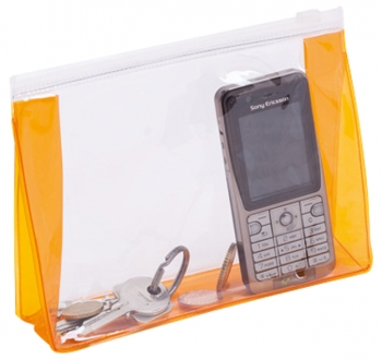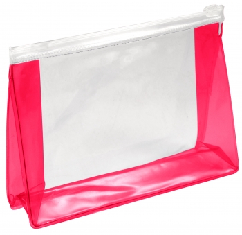 Cosmetiquero de PVC clear con detalle de color en el fuelle.