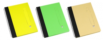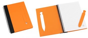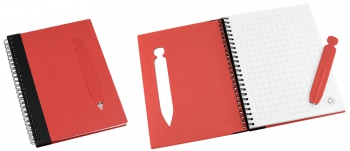 Cuaderno Ecológico con Tapas Duras de Color, en Cartón Reciclado 650gsm, 70 hojas interiores cuadriculadas y anillado metalico doble cero. Incluye BolÃgrafo Ecológico de cartón troquelado, incrustado en la tapa.(1)