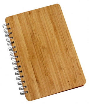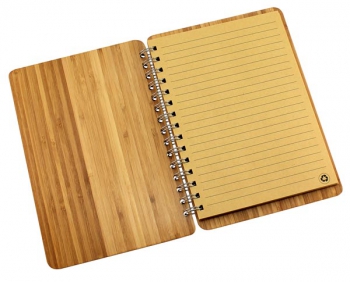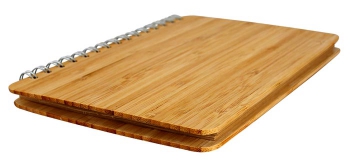 Cuaderno Ecológico con Tapas duras punta redondeada 100% de madera de Bamboo de 3mm de espesor, interior 70 hojas lineadas interiores de papel kraft reciclado de 14.3 x 20 cm y anillado metálico doble cero.(1)
