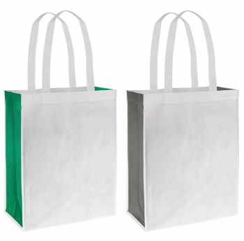 Bolsa Ecológica bicolor modelo \"Moon\", en tela TNT blanca y fuelle de color, 100% reciclable y reutilizable. Cuenta con 2 asas de 56 cm. c/u aprox.