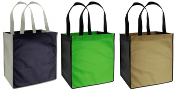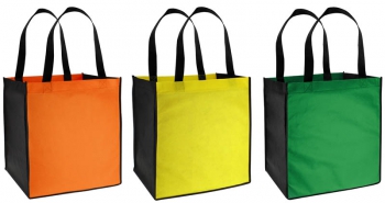 Bolsa Ecológica bicolor modelo "Super", en tela TNT, 100% reciclable y reutilizable. Cuenta con 2 asas de 54 cm. c/u aprox. Incluye base de cartón forrado en tela TNT.