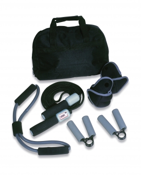 32 x 20 x 10 cm Set de pesas, soga, banda elástica y hand grips en bolso.(2)