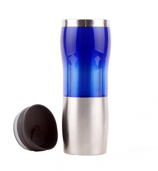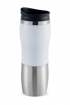 Metálico y Plástico. Interior y exterior de metal. Tapa plástica. Capacidad 380 ml.
