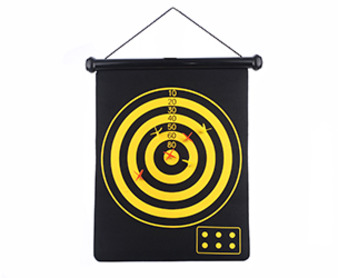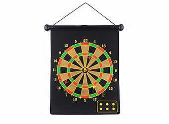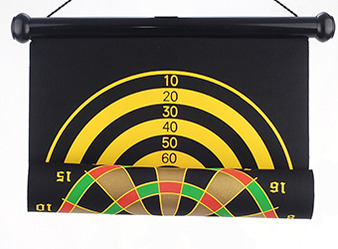 44 X 35,7 cm. Diana magnética flexible,doble faz,incluye 6 dardos de plástico con punta imantada. Estuche de cilindro en cartón sólido.(2)