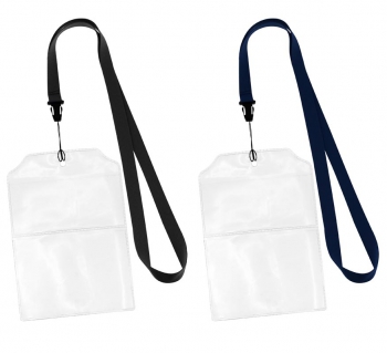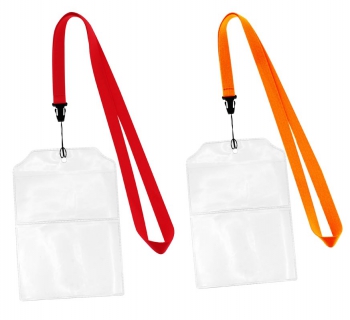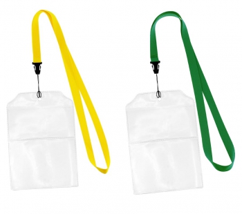 Lanyard \"Fair\" de polyester liso de 1.5 cm de ancho para sublimación, con terminal Porta-Credencial doble de PVC Clear, permite introducir 2 tarjetas informativas, una con los datos del evento o la compañÃa, y la otra con los datos personales del identificado.(1)