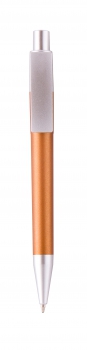 Plástico. Cuerpo de color. Pulsador, clip y puntera color plata. Pasta negra.