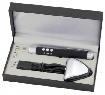 Presentador Datashow / Powerpoint con Puntero Láser y Conexión USB. Funciones de avance y retroceso. Presentación en elegante estuche de regalo de color negro.(1)